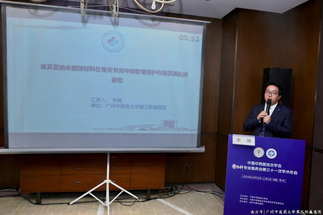 骨研院李博博士后在青年会场发表题为《埃及蓝微球通过 Wnt/β-catenin 通路抑制骨关节炎中的铜死亡和氧化应激损伤分子机制研究》的学术报告,分享其在骨关节炎(OA)治疗领域的创新性研究成果。
