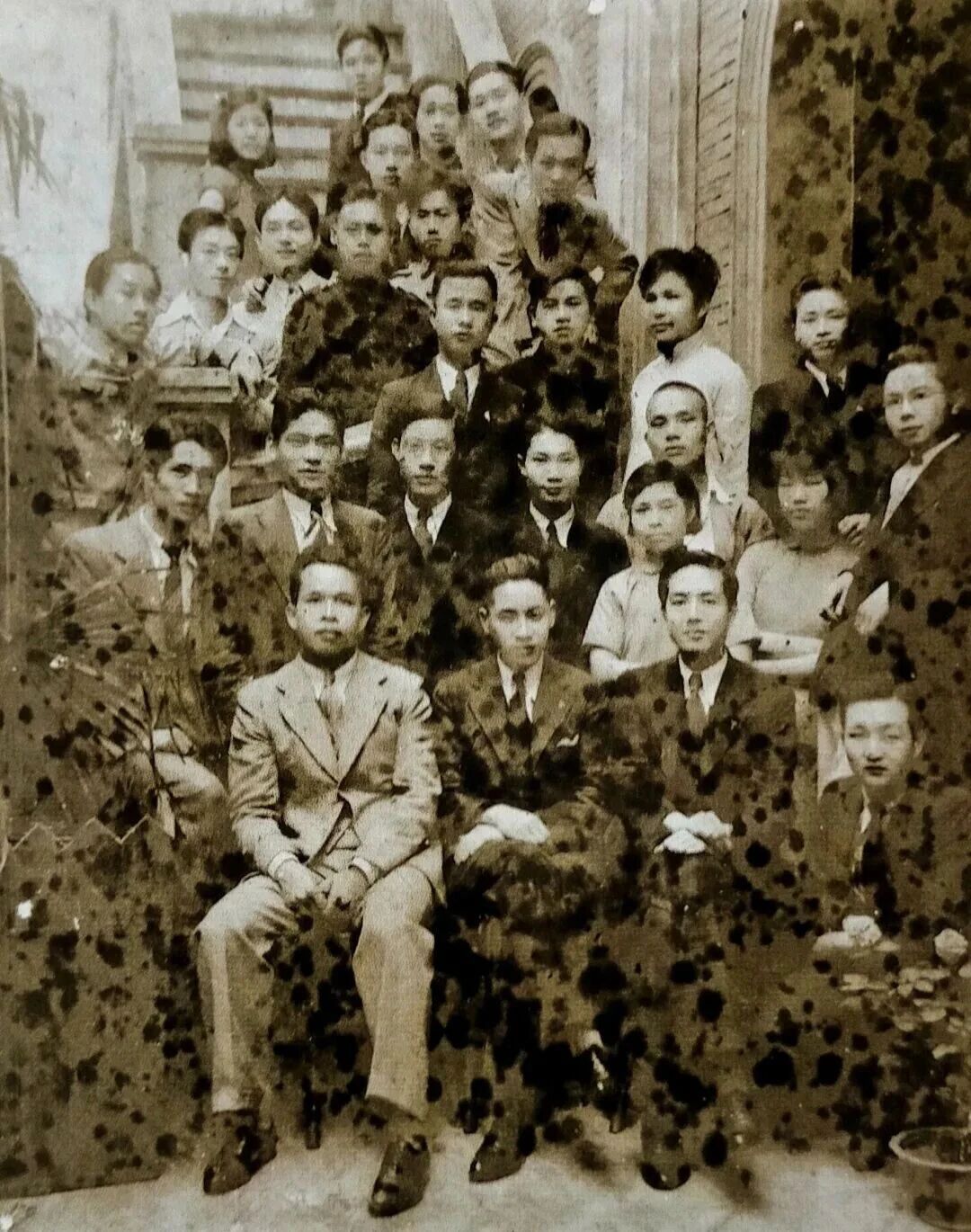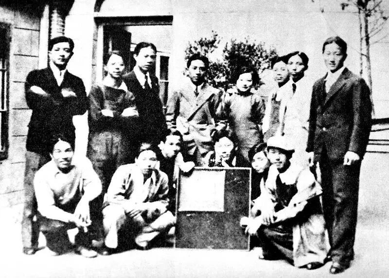 上海美专学生合影,前排为李开麟、王兰若、谢海燕等
